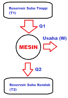 menjadi Usaha (W) dan membuang sisa Energi Panas (Q2) ke reservoir suhu